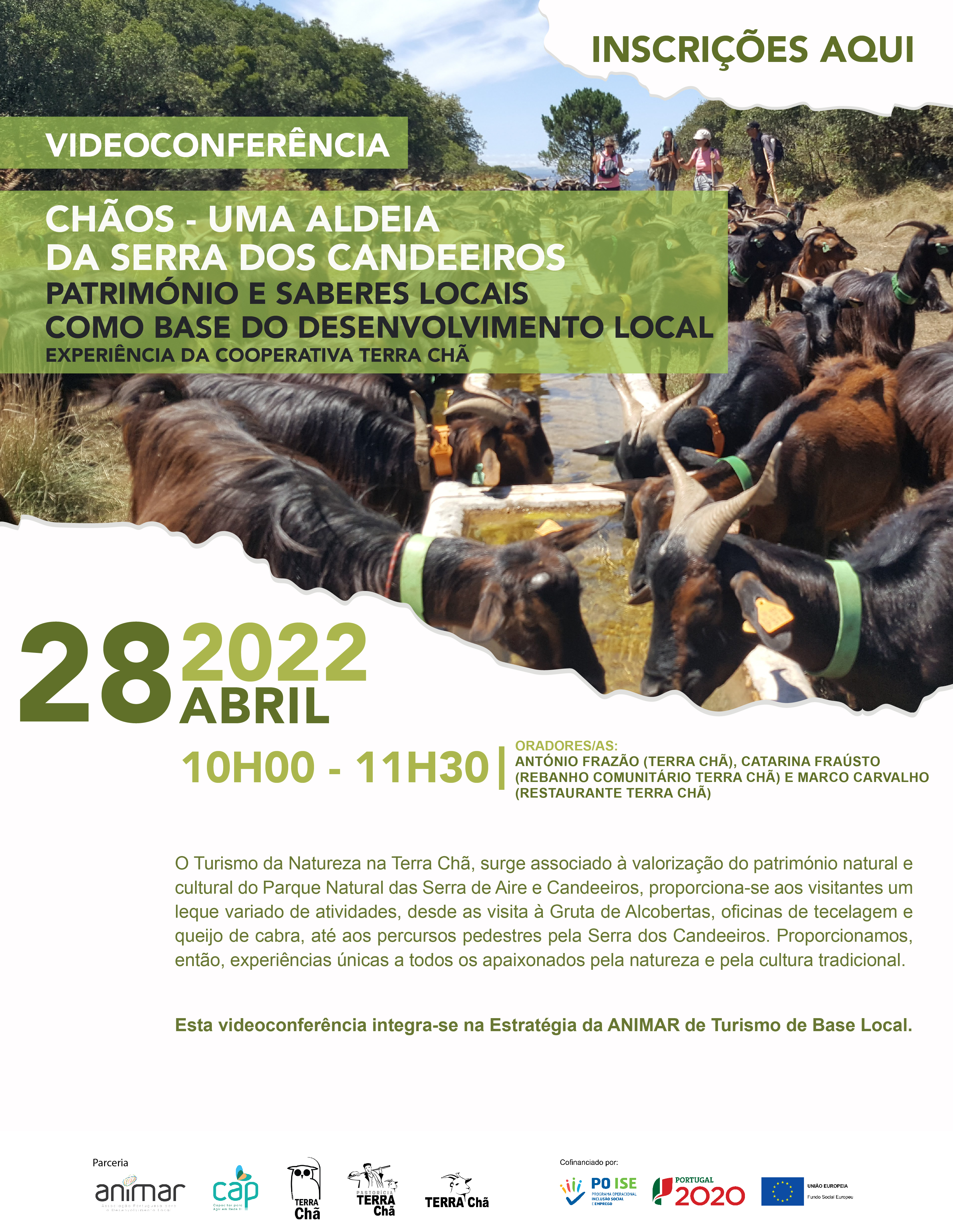 O Turismo da Natureza na Terra Chã, surge associado à valorização do património natural e cultural do Parque Natural das Serra de Aire e Candeeiros, proporciona-se aos visitantes um leque variado de atividades, desde as visita à Gruta de Alcobertas, oficinas de tecelagem e queijo de cabra, até aos percursos pedestres pela Serra dos Candeeiros. Proporcionamos, então, experiências únicas a todos os apaixonados pela natureza e pela cultura tradicional.