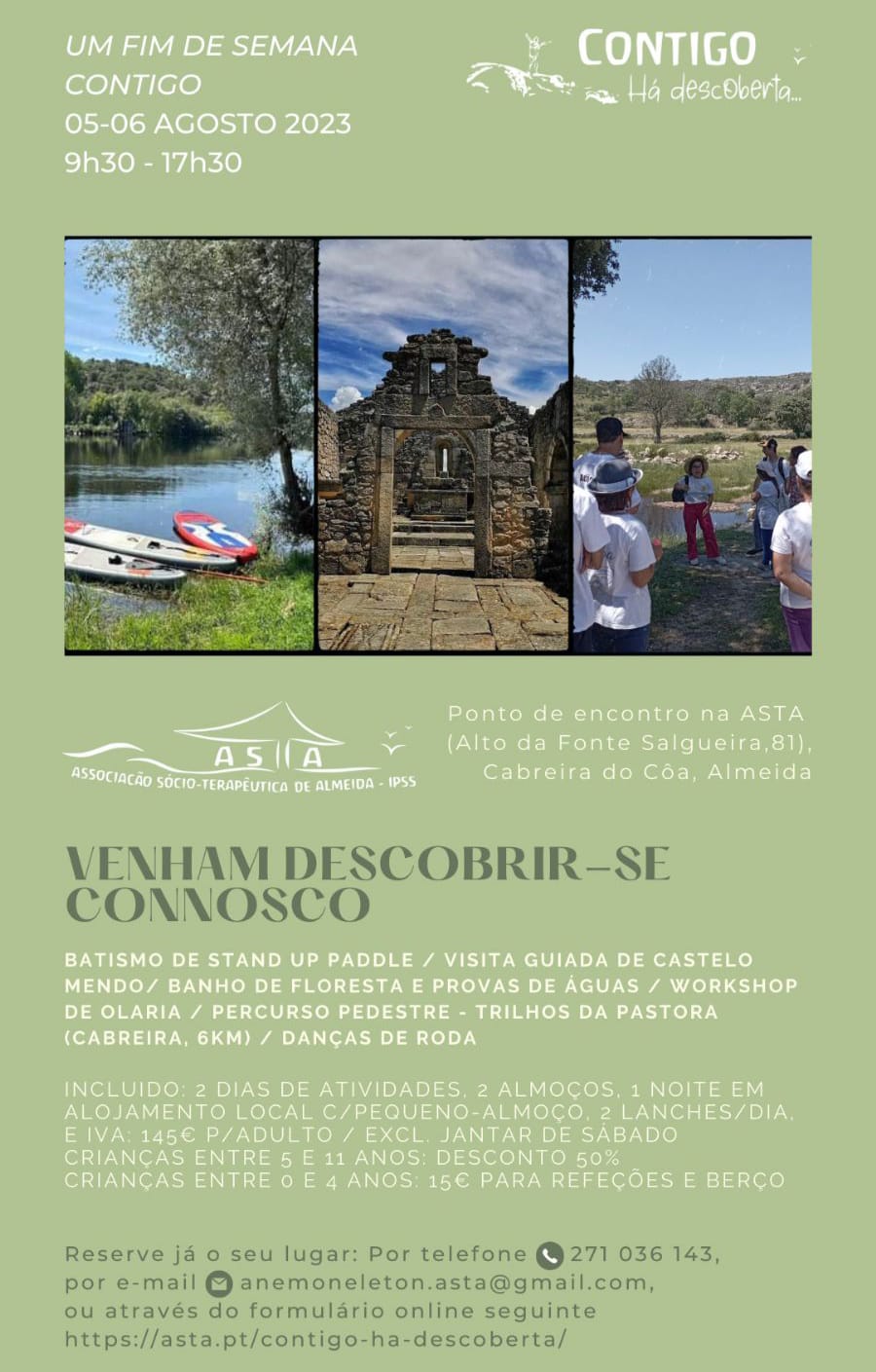 Reserve já o seu lugar : Inscrições através do formulário online no link https://asta.pt/contigo-ha-descoberta/, ou por telefone : 271 581 562 (chamada para a rede fixa nacional), ou por e-mail : anemoneleton.asta@gmail.com.