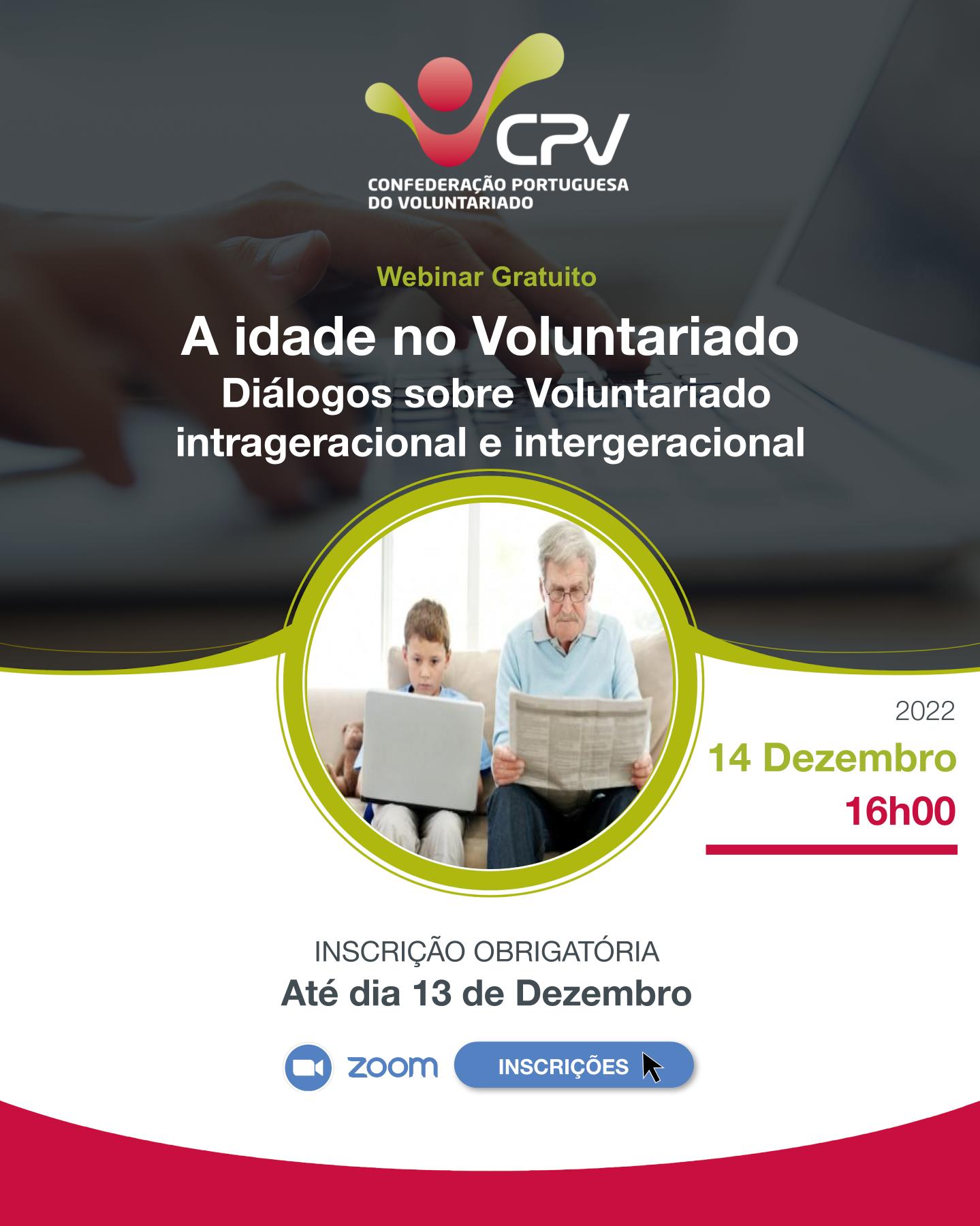 Webinar "A idade no Voluntariado: diálogos sobre Voluntariado intrageracional e intergeracional" | CPV | 14 de Dezembro 2022
