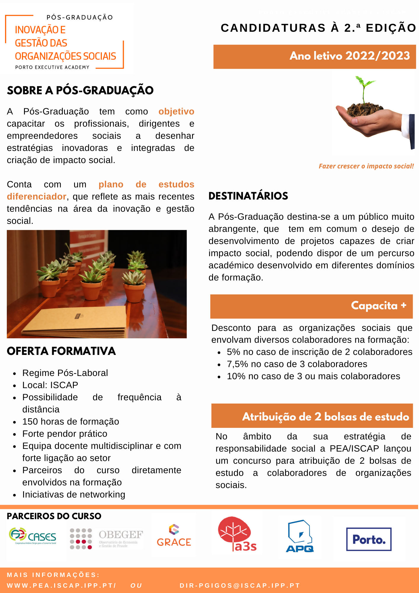 2.ª edição da Pós-Graduação em Inovação e Gestão das Organizações Sociais | CASES | ISCAP