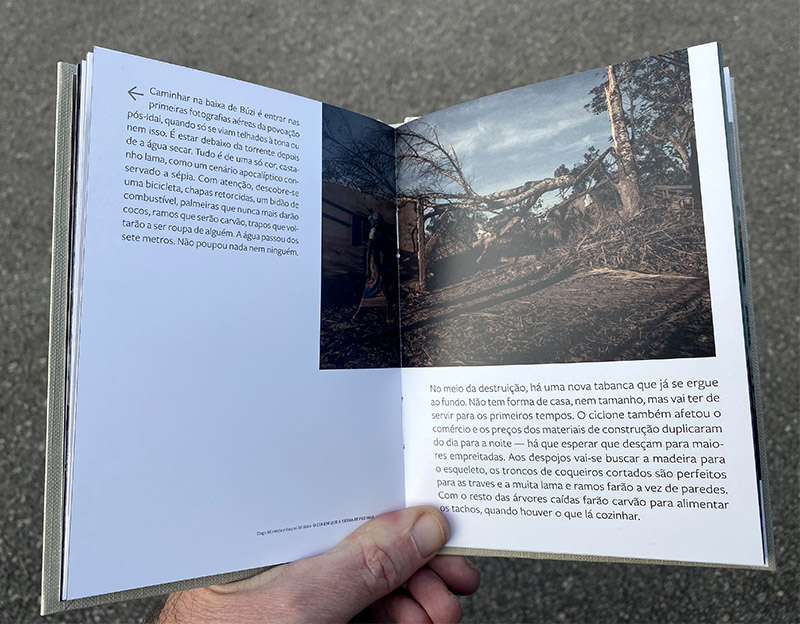 O livro reune as fotografias de Tiago Miranda e os textos de Raquel Moleiro, sobre a passagem do ciclone Idai pela Beira, Moçambique, em Março do ano passado. As vendas revertem integralmente para a Escola Secundária da Manga, na Beira, uma das mais atingidas pelo ciclone.