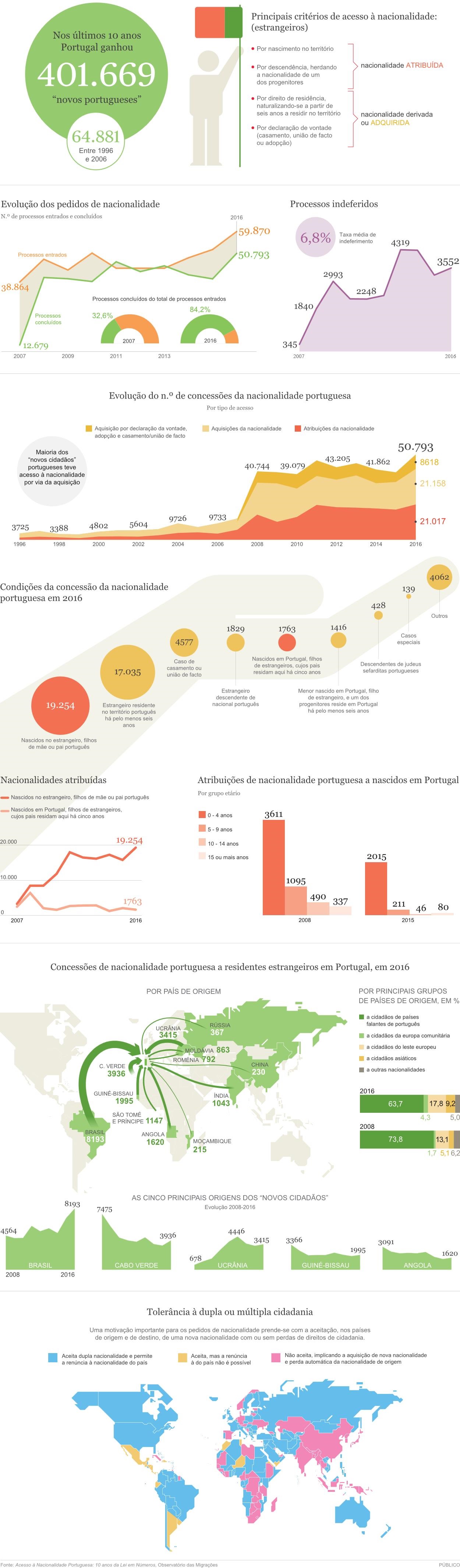 Infografia com dados estatísticos aos pedidos e atribuição de nacionalidade portuguesa a imigrantes (1996 a 2006)